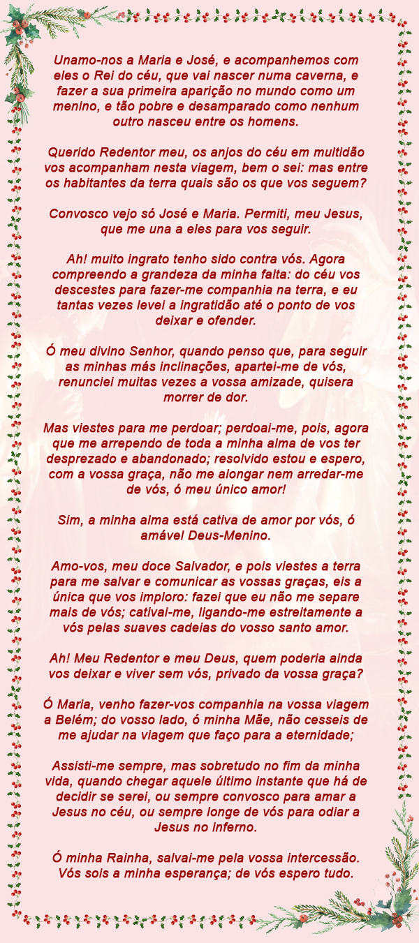 Ó Deus meu, prostrado aos vossos pés, eu vos peço, não prazeres, riquezas, honras, mas somente o vosso amor; e a cada passo que dou, a cada olhar, a cada respiração, tenho intenção de vos pedir o vosso amor.